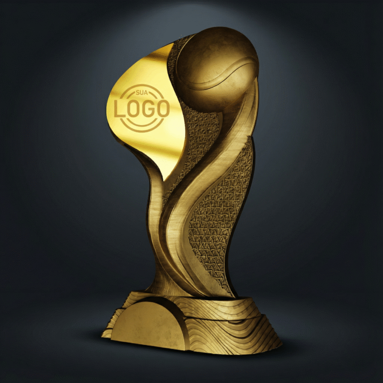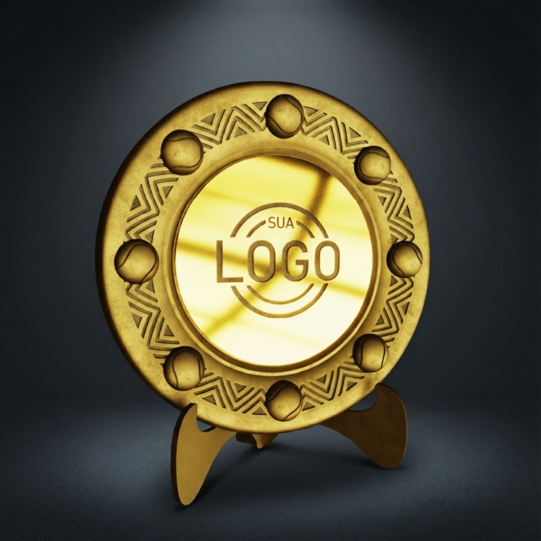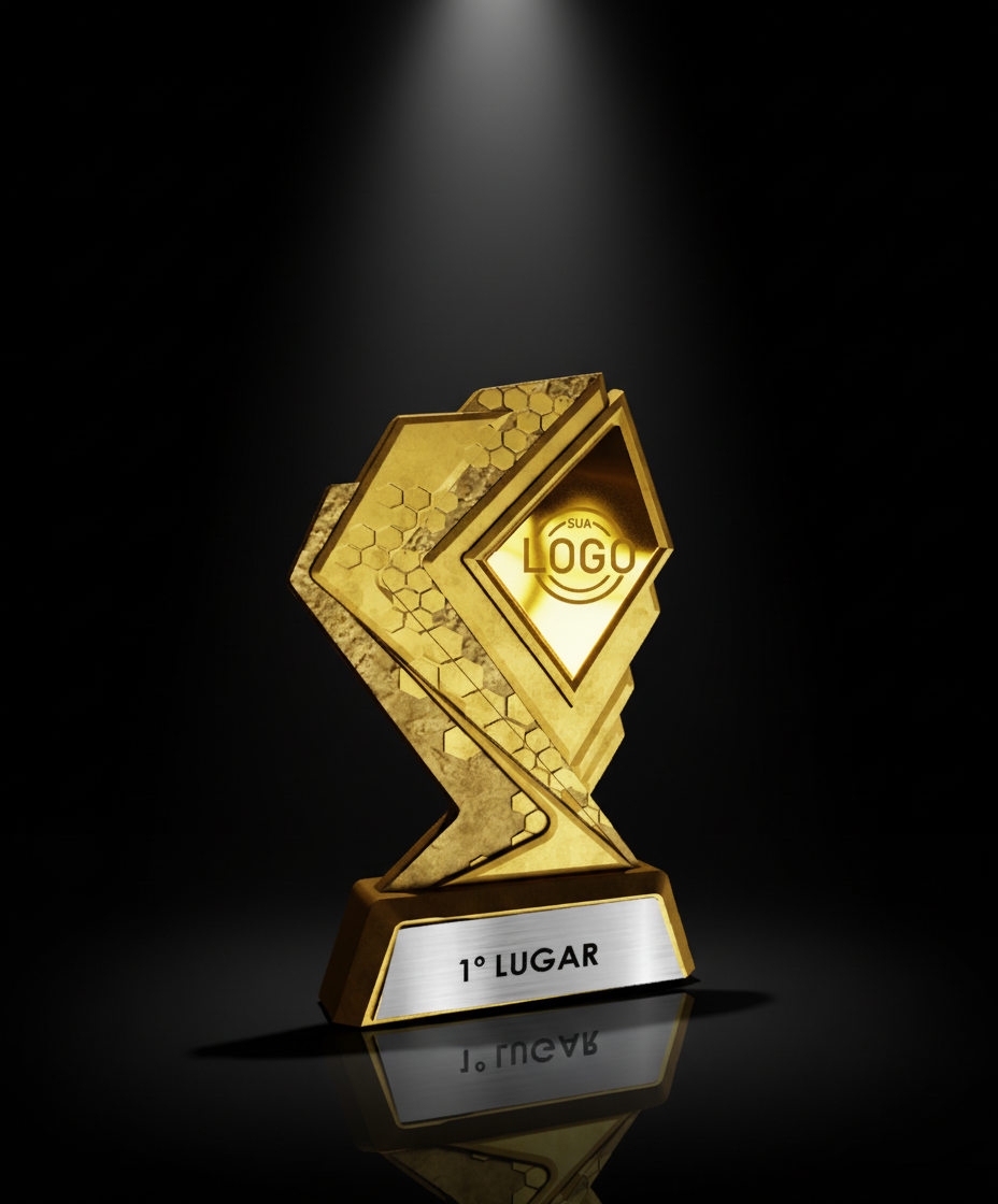 Curvaturas criam moldura para o logo central, sem comprometer a leitura de textos auxiliares.