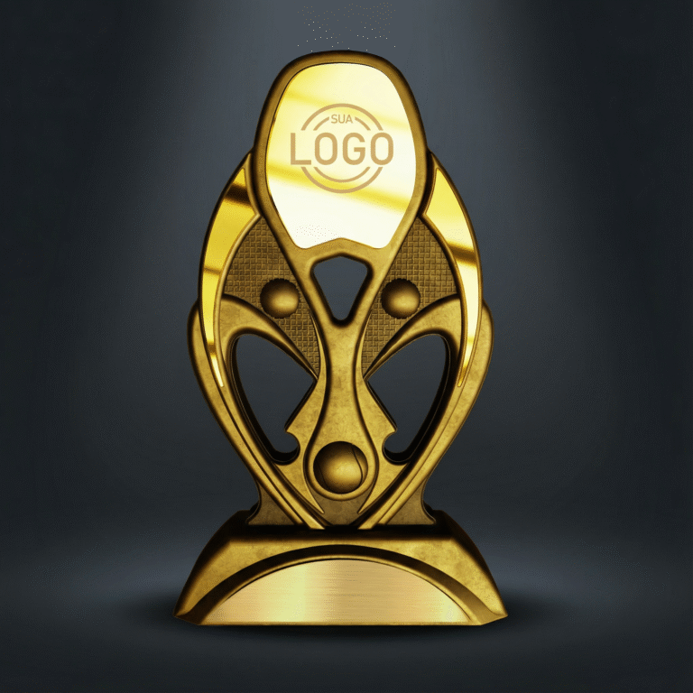 Proporção elegante que valoriza o branding e rende ótimas fotos em pódios com cenografia.